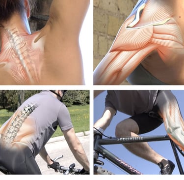Stills from a video about joint pain, with my illustrations of anatomy added on top. along with the 'cutaway' anatomy, I animated a red glow that traveled from the top to the bottom of each extremity and body part.